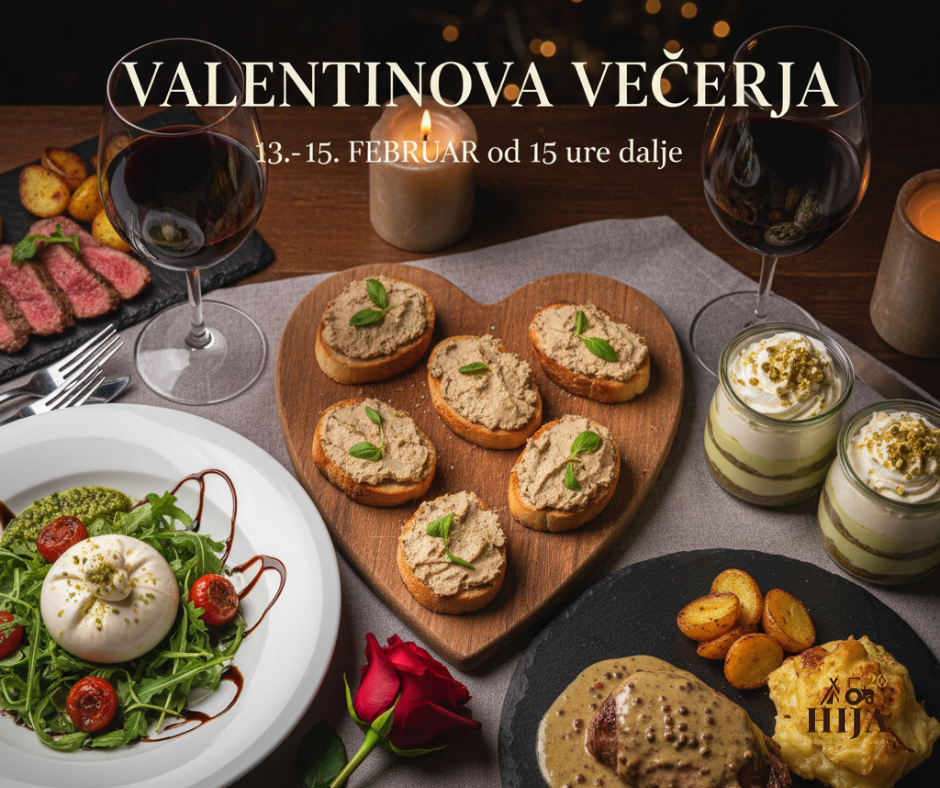 Ljubezen gre skozi želodec! Med 13. in 15. februarjem (od 15. ure dalje) vas vabimo na poseben valentinov meni, ustvarjen za trenutke v dvoje.